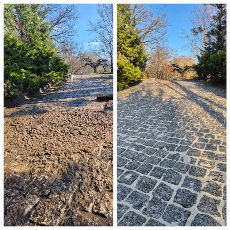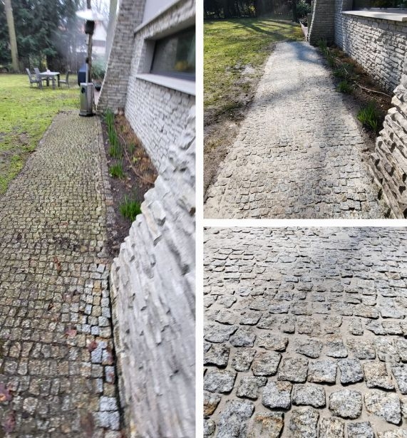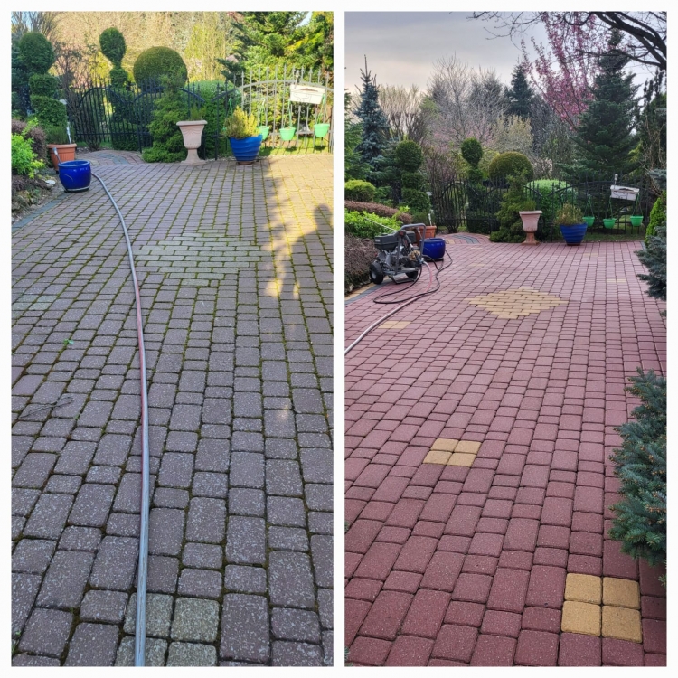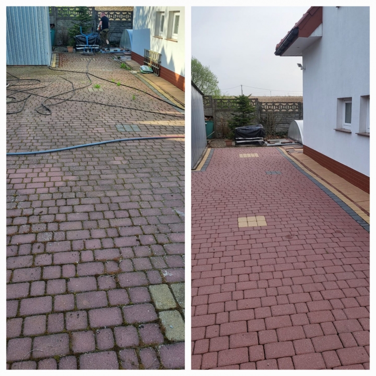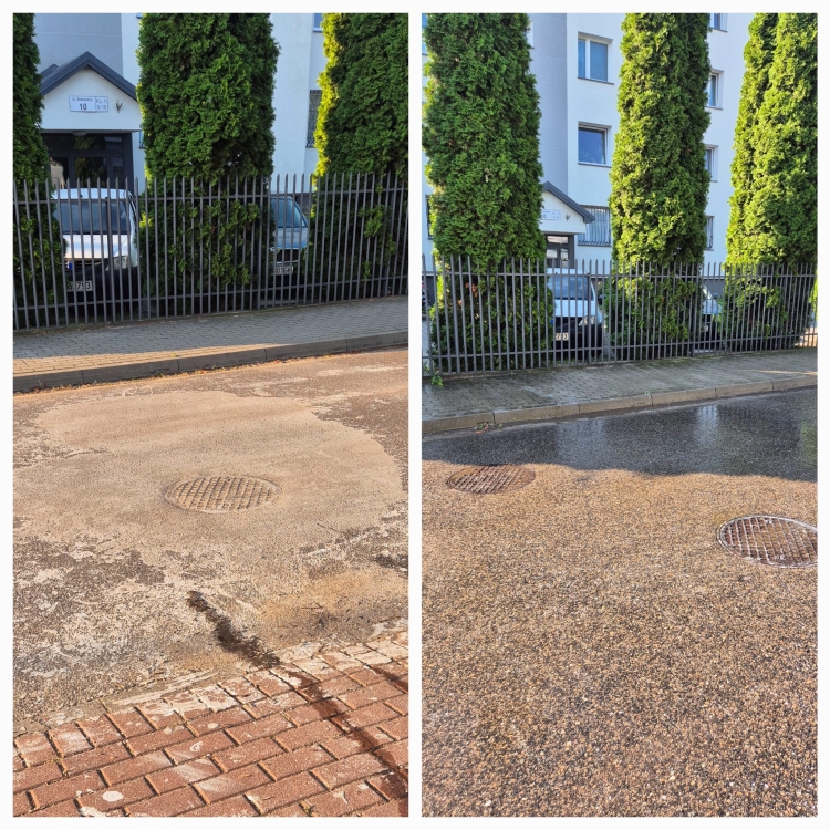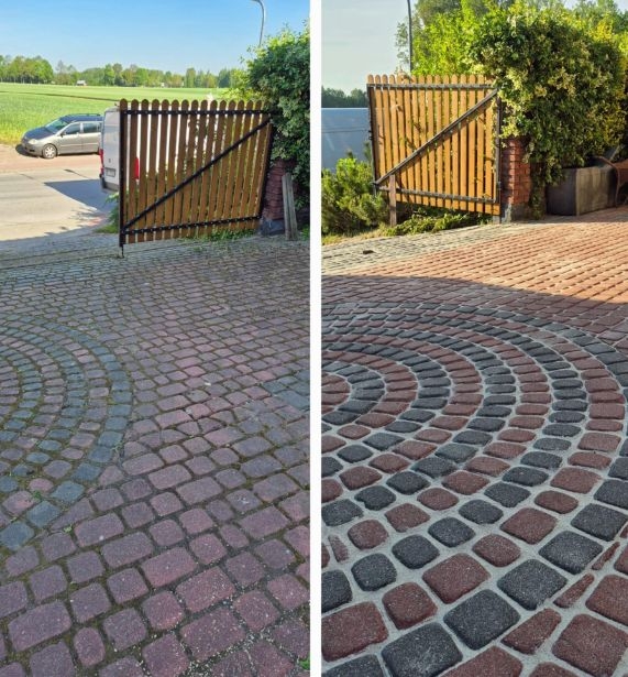 Skutecznie usuwamy zabrudzenia drogowe, mech, naloty, przebarwienia oraz plamy z oleju. Dzięki temu kostka odzyskuje swój naturalny kolor i estetyczny wygląd.