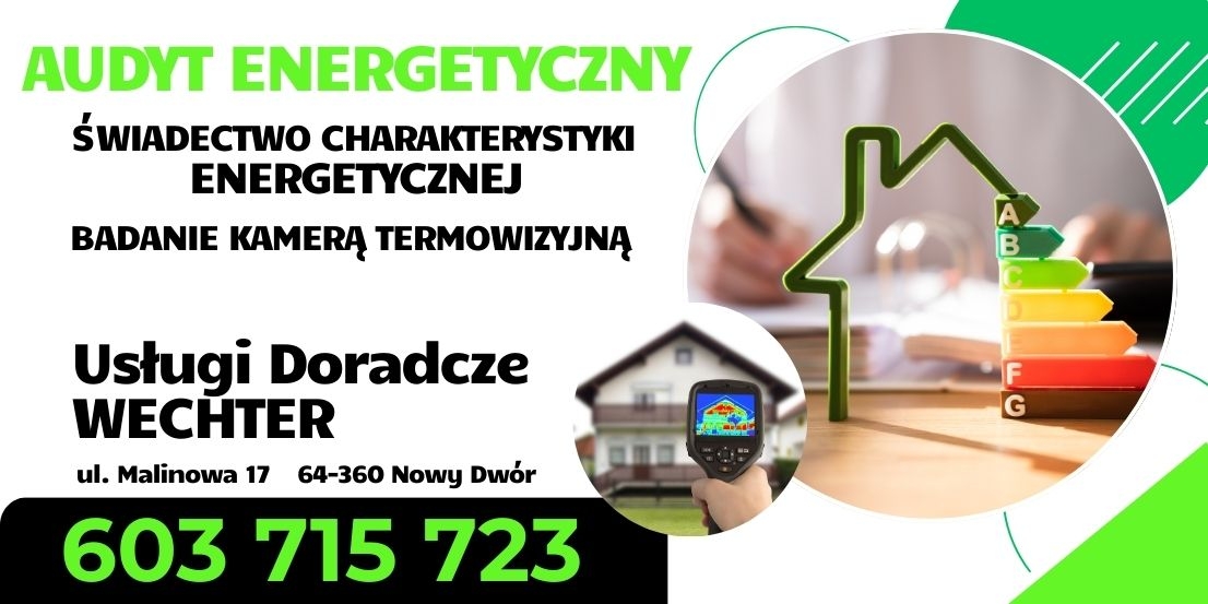 Wechter tel. 603715723 audyt energetyczny świadectwo charakterystyki energetycznej dla mieszkań lokali domów Wolsztyn Nowy Tomyśl Świebodzin okolice najtaniej najwyższa jakość kompleksowo na fv profesjonalnie do sprzedaży mieszkań legalne szybki termin Po